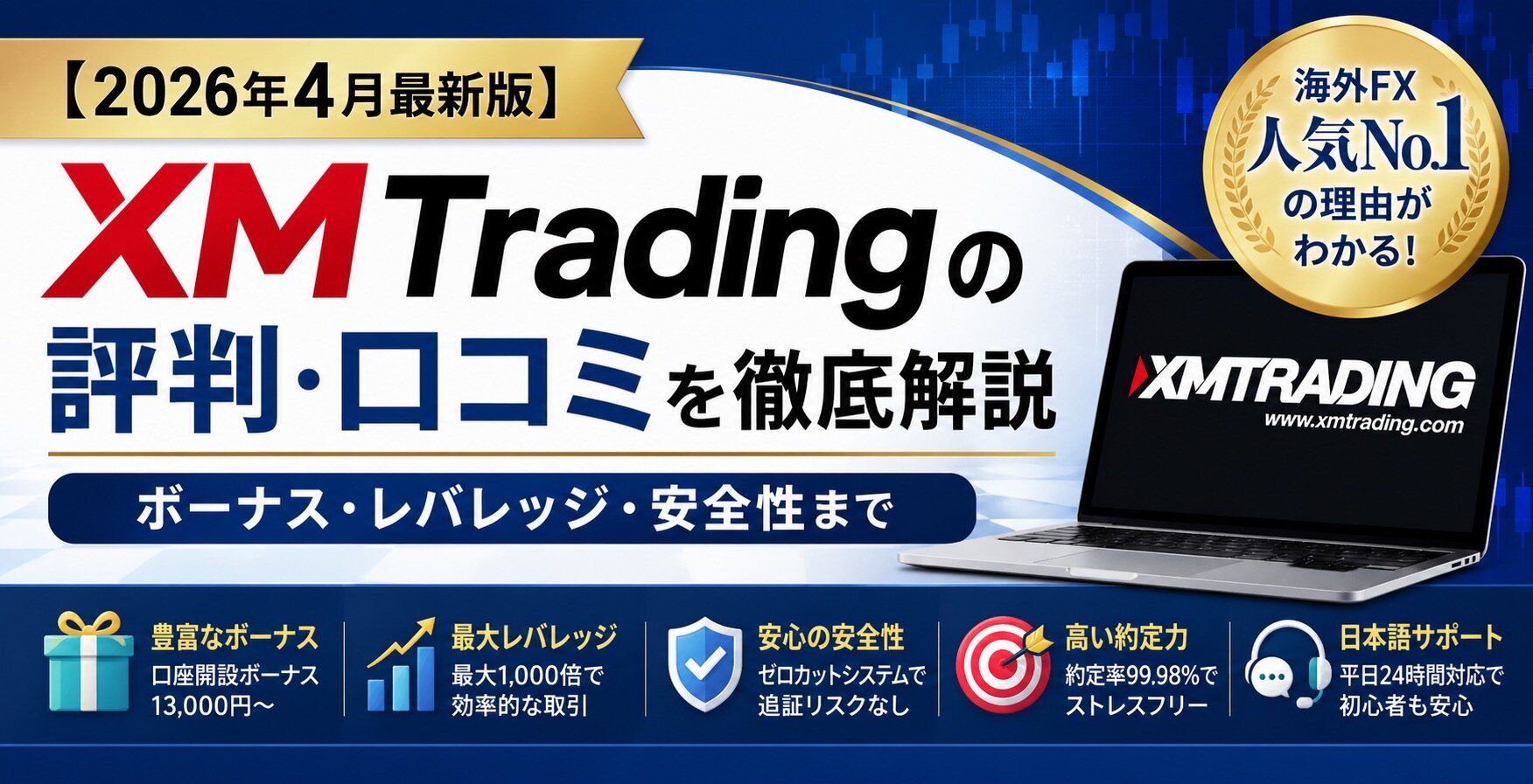 XMTradingは海外FX業者として圧倒的な人気を誇り、豊富なボーナスや最大 1,000倍のハイレバレッジで質の高い取引環境を提供。2026年4月時点の最新評判や口コミをまとめ、メリット・デメリットを徹底解説します。